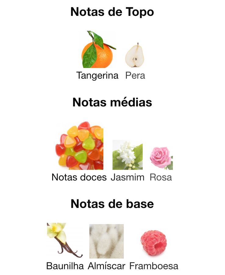 Notas de Base: Baunilha, Almíscar e Framboesa